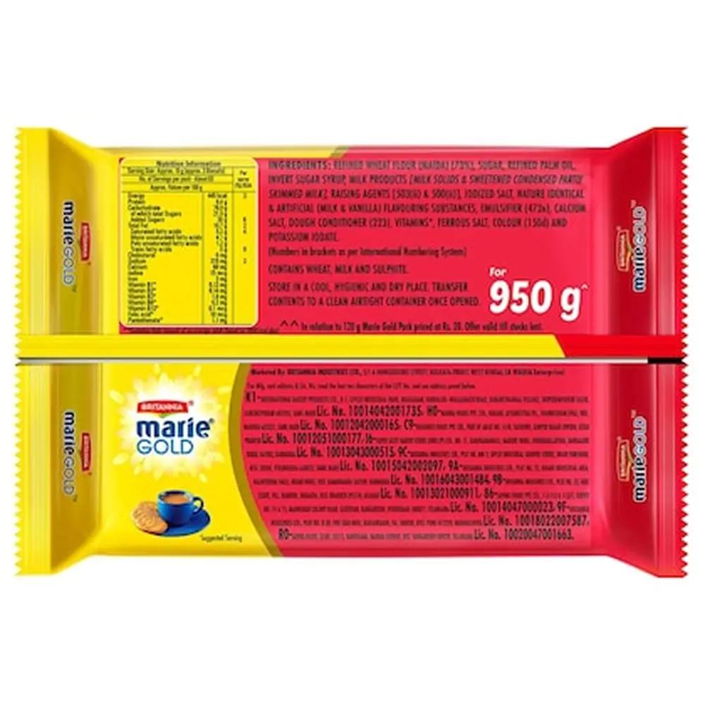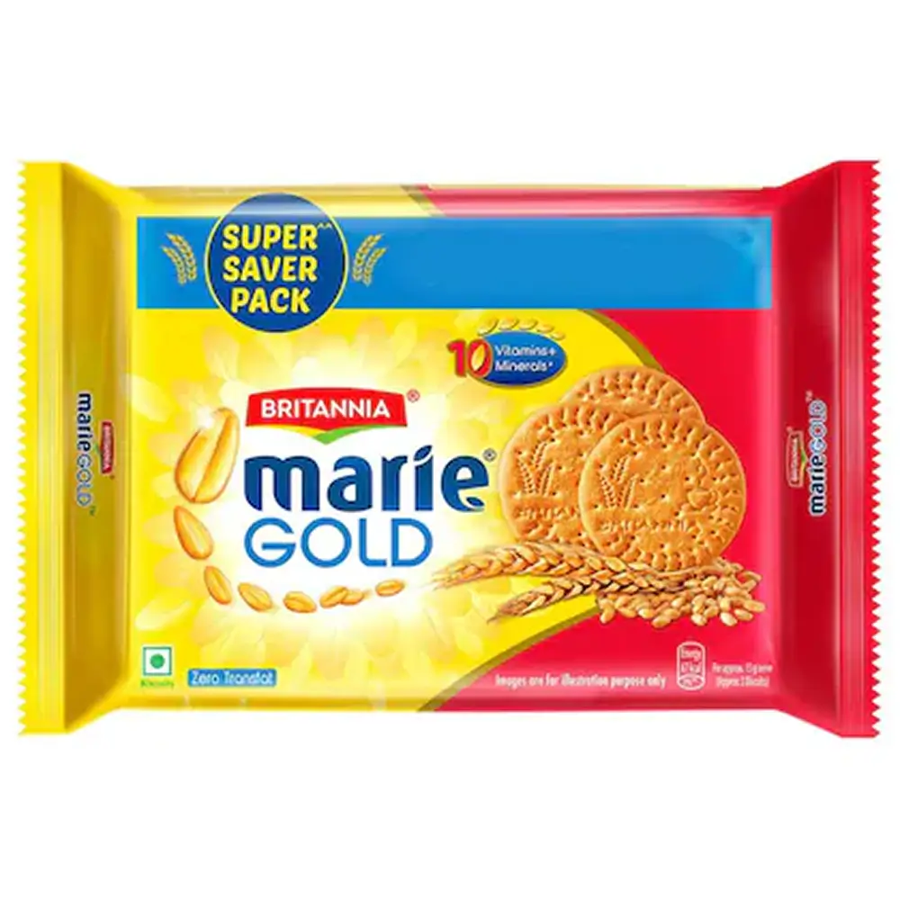 Britannia Marie Gold Biscuits are crisp and light biscuits packed with the goodness! Marie Gold biscuits act as a perfect companion for your cup of tea. Britannia biscuits and cookies for long have been a part of every home, sharing those moments of joy.  Believing in delivering fresh products, Britannia India manufactures some of India’s favourite brands like 50-50, Tiger, NutriChoice, Bourbon, Good Day, Milk Bikis and Little Hearts. Buy this product online now!