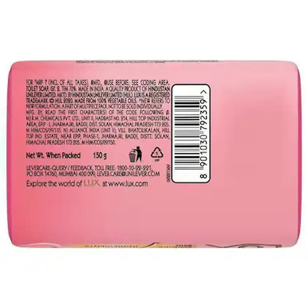 Lux Rose & Vitamin E Soft Glowing Skin Soap Bar adds a touch of glow to your skin and leaves it beautifully fragrant. Infused with 7 beauty ingredients, combining essence of aromatic French Rose known for its soothing and beauty enhancing benefits, and with Vitamin E know to moisturize and nourish skin, this bar leaves your skin soft, smooth and glowing. This soap for bathing, not only effectively removes dust and sweat on your skin, but also leaves it feeling gently cleansed. So what are you waiting for? Buy the product online at the best rate, right here!