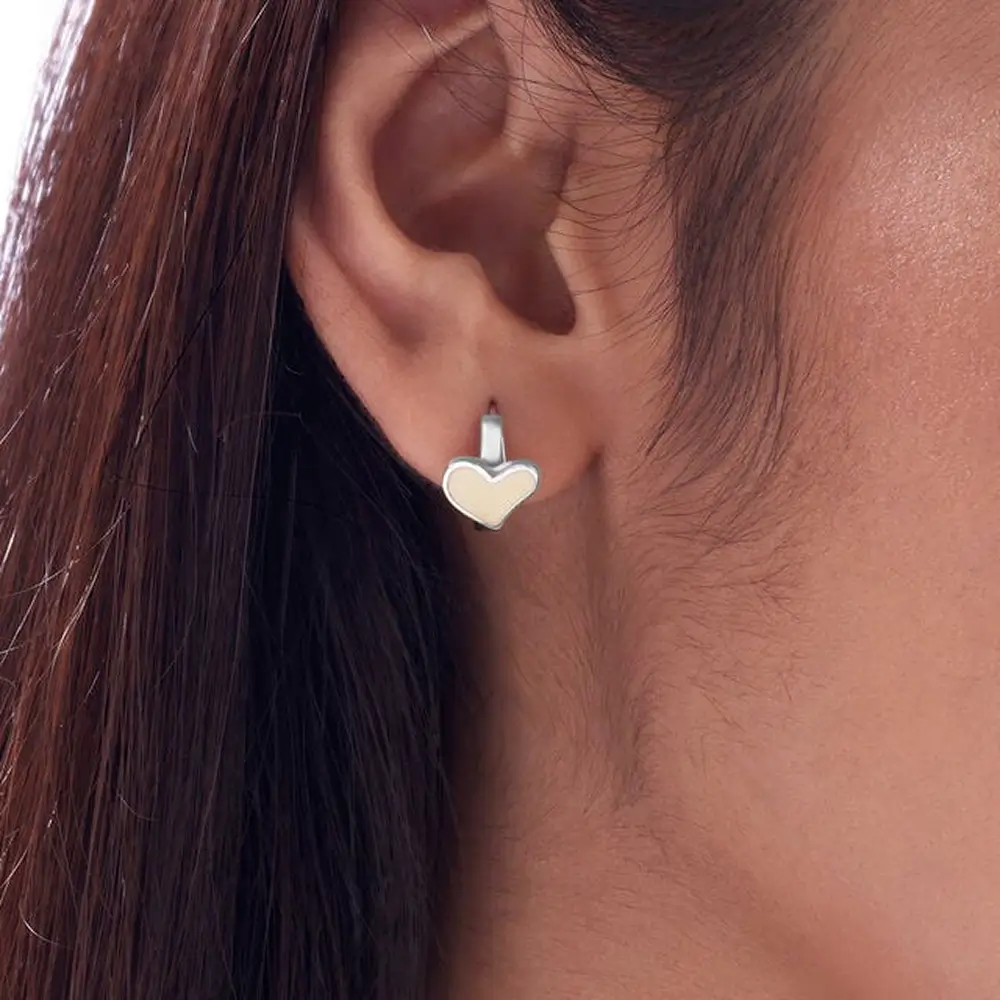 Sweet simplicity shines in the Soft Heart Silver Hoop Earrings. Designed in 92.5 Karat silver with creamy resin hearts, they bring a soft, feminine touch to your daily wardrobe.