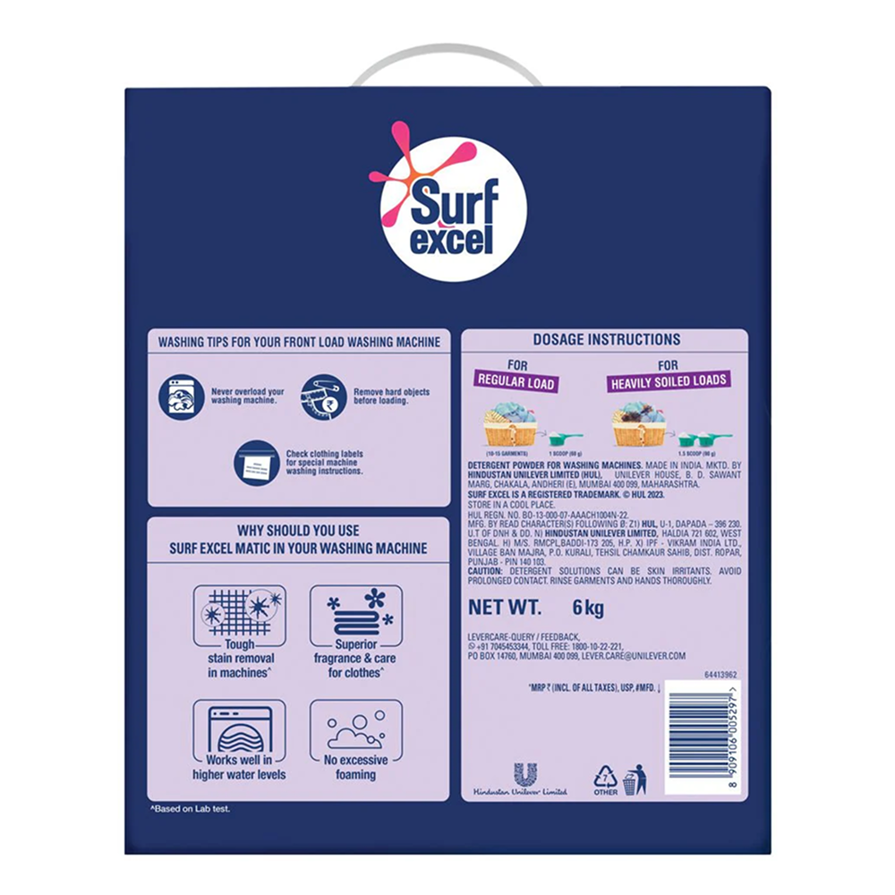 Surf Excel Matic Front-Load – the machine specialist laundry detergent from the Surf excel Matic family – gives you 100% tough stain Removal in machines. Surf Excel Matic Front Load is specially designed to work in a high water level environment (40 litres) of front load washing machines. It’s hand rub action power penetrates clothes and removes tough stains in the washing machine itself. Being a washing machine specialist detergent, it dissolves completely in the machine and ensures its leaves no residue on your clothes or your machine.